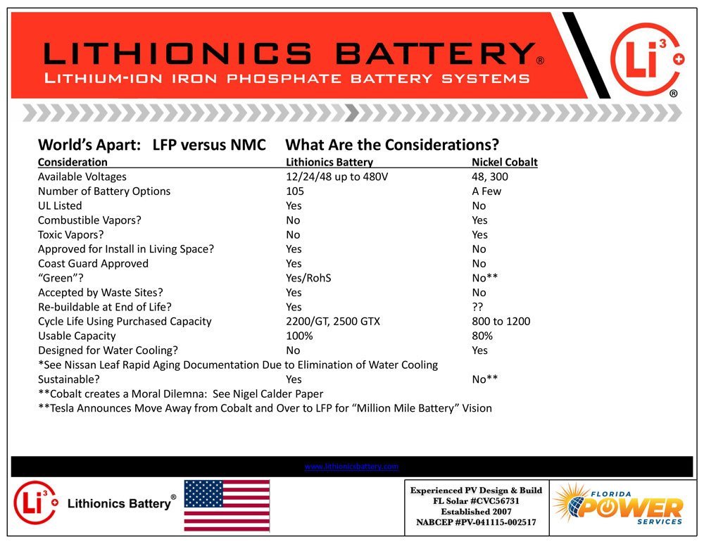 The depth of discharge indicates at what level the battery can discharge before recharging. With today’s lithium battery chemistry this range is usually between 80-100%. Some of the biggest names in batteries are on the lower end of this number while our custom battery banks have 100% D.O.D giving you more usable energy when you need it.